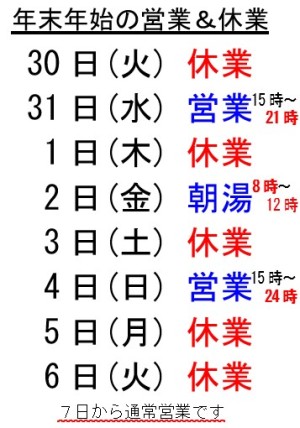 さて、年末年始の営業日のお知らせです